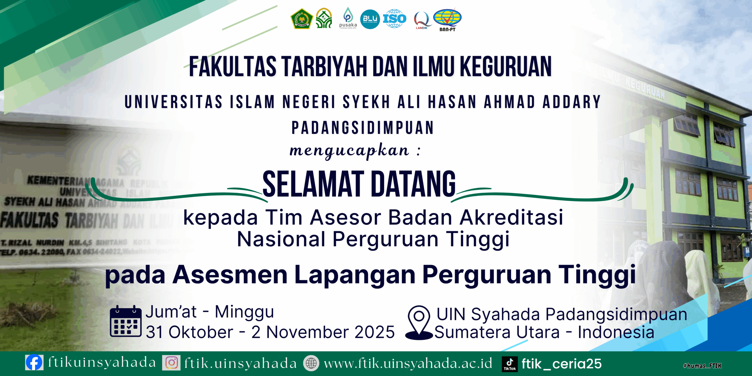 Padangsidimpuan, 28 Oktober 2025β Universitas Islam Negeri (UIN) Syekh Ali Hasan Ahmad Addary (Syahada) Padangsidimpuan menggelar Upacara Peringatan Hari Sumpah Pemuda Indonesia ke-97 pada tanggal 28 Oktober 2025. Upacara yang dilaksanakan di lapangan rektorat UIN Syahada ini mengusung tema βPemuda...