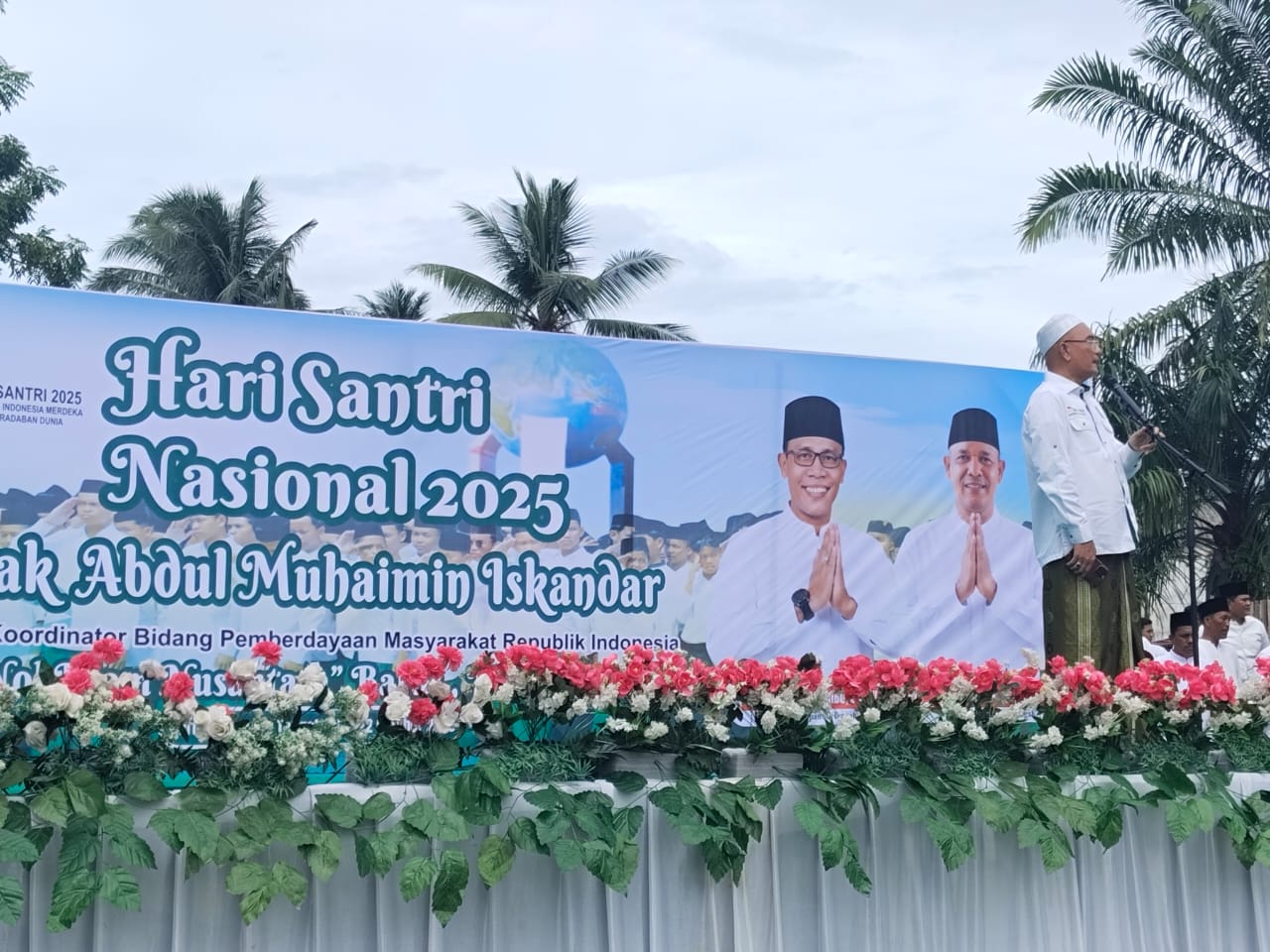 Barus; 23 Oktober 2025 — Menteri Koordinator Pemberdayaan Masyarakat, Abdul Muhaimin Iskandar, memimpin peringatan puncak Hari Santri Nasional 2025 yang diadakan di Titik Nol Barus, Tapanuli Tengah, Sumatera Utara, pada hari Rabu (22/10/2025). Acara ini menjadi momentum penting untuk menegaskan kembali peran santri dalam pembangunan bangsa.