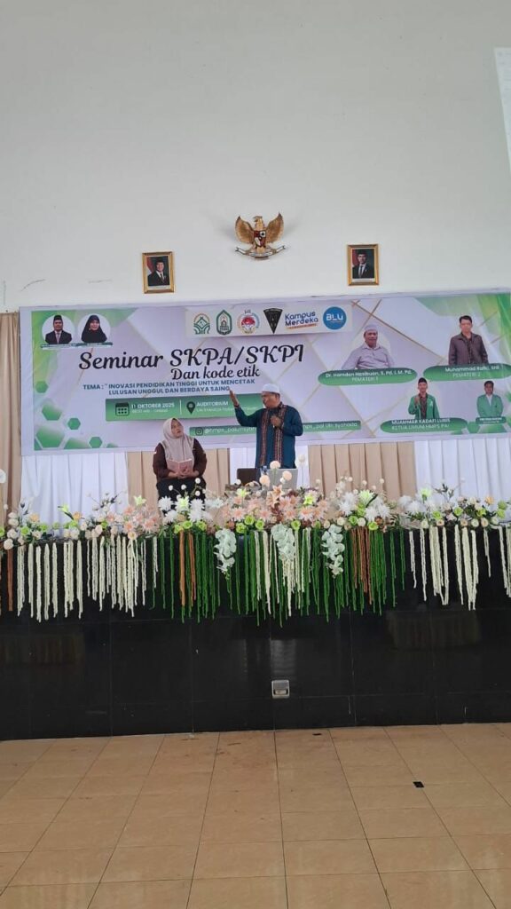 Padangsidimpuan,Β β Himpunan Mahasiswa Program Studi Pendidikan Agama Islam (HMPS-PAI) UIN Syekh Ali Hasan Ahmad Addary sukses menggelar seminar bertajuk “Inovasi Pendidikan Tinggi Untuk Mencetak Lulusan Unggul Dan Berdaya Saing” pada Sabtu, 11 Oktober 2025. Acara yang membahas SKPA, SKPI, dan Kode Etik Mahasiswa ini dihadiri ratusan peserta di Auditorium Syekh Ali Hasan Ahmad Addary.