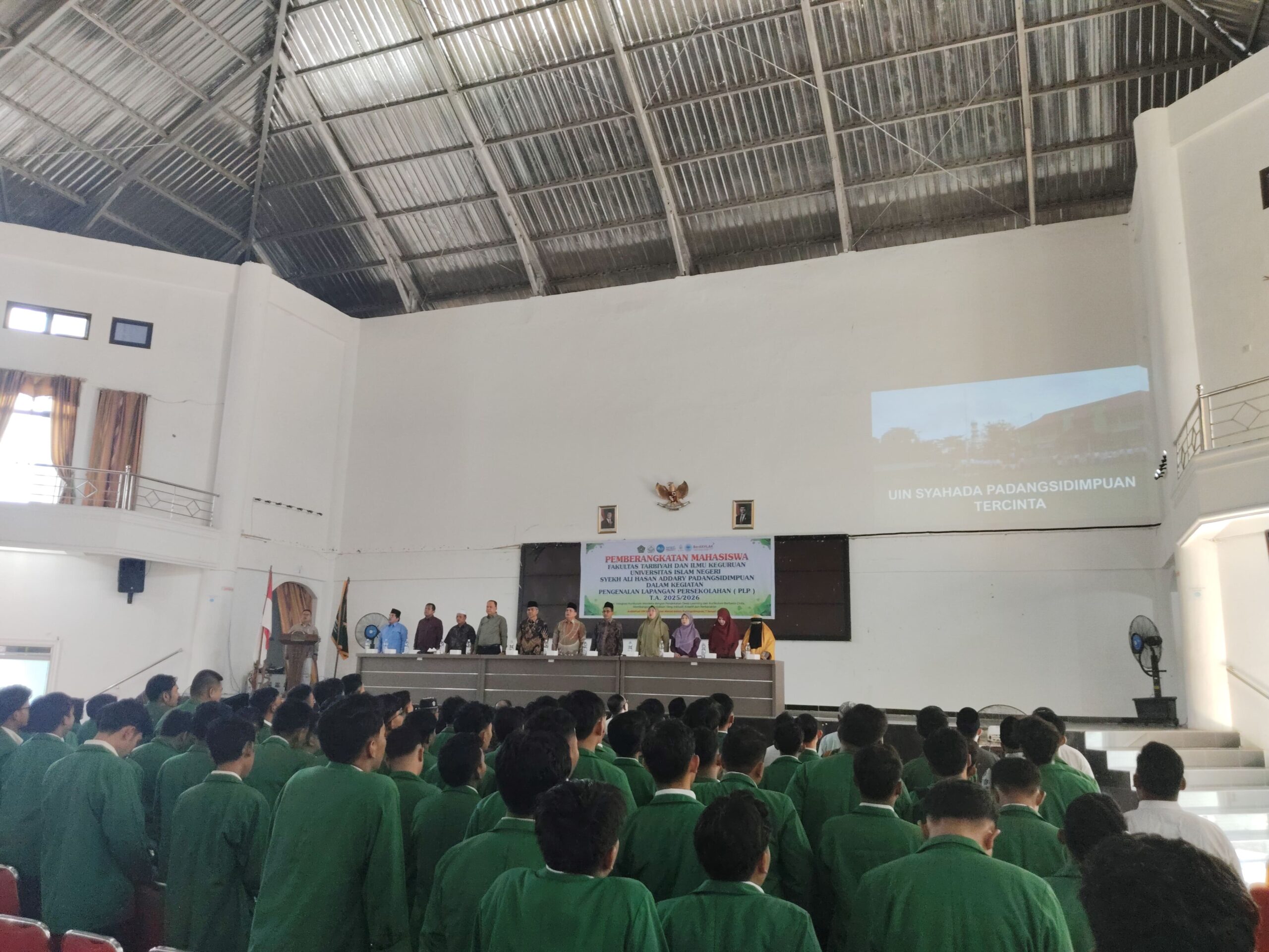 Padangsidimpuan, 7 Januari 2026 – Suasana penuh semangat dan harapan memenuhi Auditorium UIN Syahada Padangsidimpuan pada hari ini. Ribuan pasangan mata penuh tekad menyaksikan momen penting: pemberangkatan mahasiswa peserta Pengenalan Lapangan Persekolahan (PLP) yang akan menginjakkan kaki di berbagai sekolah dan madrasah mulai esok hari (8 Januari 2026).